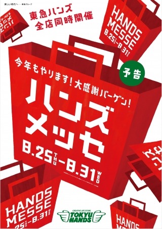銀座の商業施設「マロニエゲート」(東京都中央区銀座2-2-14 運営会社:三菱地所プロパティマネジメント株式会社)では、5F~9F『東急ハンズ銀座店』におきまして、8月25日より7日間 「ハンズメッセ」 を開催いたします。