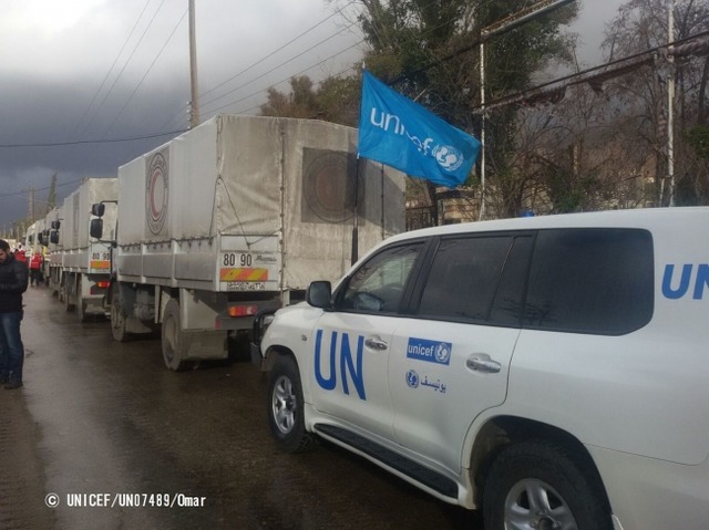 「本日、ユニセフとWFP、UNHCR、IOMは、シリアとヨルダンの国境検問所の周辺に足止めされている7万5,000人以上の人々が緊急に必要としている1か月分の食糧及び人道的支援物資を届ける緊急支援活動を完了しました。