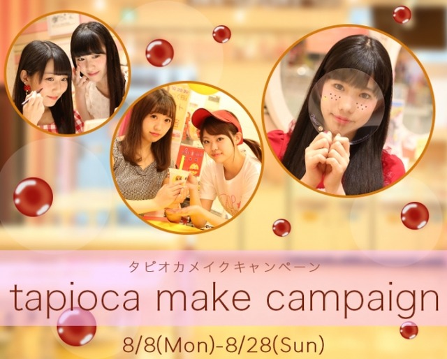 シャープ株式会社の運営するメイクタイムLIVE配信アプリ「メイキス」とネットタワー有限会社の運営するタピオカドリンク専門店「パールレディ」は、2016年8月8日から8月28日までの期間、タピオカとメイクを組合せた新しいメイク「タピオカメイク」による新しいムーブメントの創出に挑戦するタイアップ型キャンペーンを、メイキスアプリ内およびパールレディ対象店舗にて開催致します。また、原宿限定企画としてドリーム*ステーションJOL原宿(以下JOL原宿)にて「タピオカメイク透明うちわ」の配布、および、Twitter投稿キャンペーンを同時開催致します。