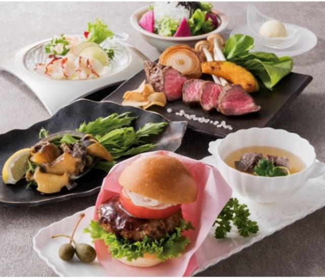 日本三大和牛のひとつで厳しい基準を満たした“神戸ビーフ”を、大胆にも“ハンバーガー”スタイルでご提供。目の前で焼きあげるジューシーなハンバーガーと山葵がアクセントになった和風ソースのハーモニーは絶妙。ボリュームたっぷりのハンバーガーを鮑の鉄板焼、神戸ビーフのローストとともにご堪能ください。