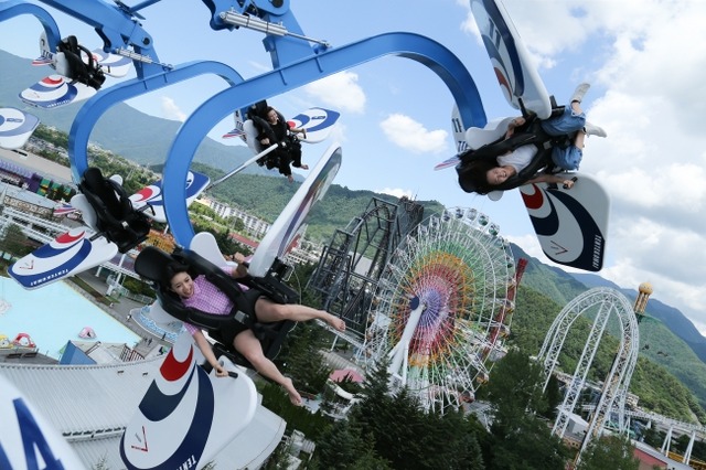 「テンテコマイ」は、地上約32メートルの高さで大空を旋回しながら、自ら翼を操縦し機体を回転させることで、アクロバティックなスリル体験ができるアトラクション。“ただ乗っているだけ”ではなく、“自ら操作する”というこれまでの遊園地のアトラクションには無い「やりこみ要素」により、“回転できない→回転させたい→もっと回転させたい→もっともっと回転させたい”と何度も挑戦するリピーターが増加しつつあります。