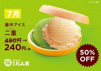 1位は「最中アイス 二重」でした。気温が30度を超える暑さが続き、最中のなかに2種類のアイスがサンドされていてボリュームがあることが、人気の要因といえます。加えて、7月度の半額キャンペーン効果で後押しされました。
