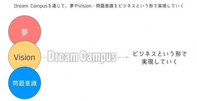 「Dream Campus」は、単なるアイテ゛アワークショップ・発表会とは異なり、本来社会人にならないと受講て゛きなかった起業家向けフ゜ロク゛ラムをカスタマイズし、様々なレクチャーやトレーニングを実施しながら、自身のビジョンや問題意識を「ビジネス」という形で実現・解決できるようサポートするプログラムです。大学生・大学院生であれば誰でも無料で参加ができます。