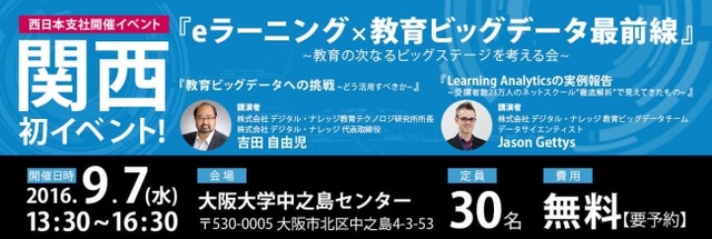 『関西発!eラーニング×教育ビッグデータ最前線~教育の次なるステージを考える会~』の詳細はこちら