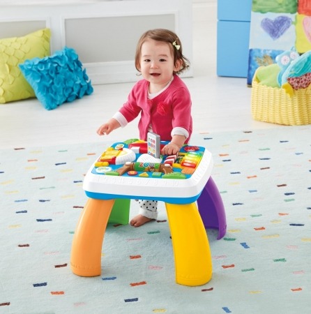 このたび、新たに発売する「スマートステージ・バイリンガル・テーブル」は、生後6カ月~36ヵ月まで成長に合わせて遊び方を変えられる、フィッシャープライス独自のスマートステージ機能を搭載したテーブル型のバイリンガル知育玩具です。120以上の歌やメロディやおしゃべりで、日本語と英語、反対語やABC、数字や色などを遊びながら自然と学ぶことができます。