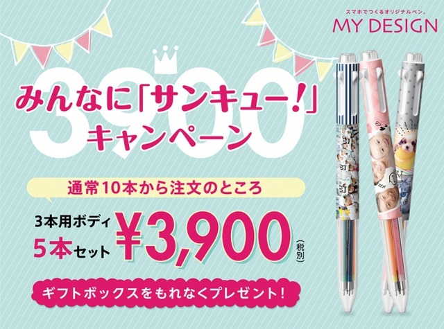 「マイデザイン」は、スマートフォンアプリ『MY DESIGN』で、カスタマイズペンi+(アイプラス)のペンボディを簡単にデザインして購入できるサービスです。2016年1月から全国展開を開始し、スマートフォンに入っているお子さまやペットの写真から、オリジナルペンを作ってギフトに利用できることが、20代~30代の女性を中心にご好評をいただいています。