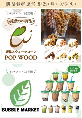 ポップコーン専門店の「ポップウッド」、タピオカドリンクの「バブルマーケット」が神戸マルイ初登場!!