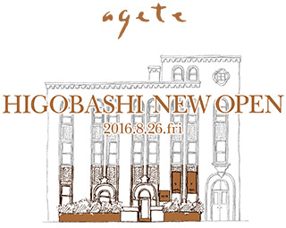 2016年8月26日(金)関西に初の路面店、agete HIGOBASHIがオープンいたします。