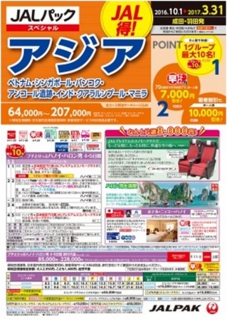 商品、海外ツアー「JAL得!」第二弾として、アジア、アジアのリゾート、韓国、台湾、香港・マカオ・上海・北京・大連