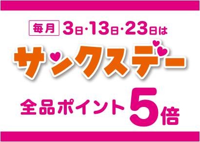 「サンクスデー」では、現在行っている「ハッピーデー」と同じく、全商品を対象に通常の5倍のポイントを付与します。2016年9月から12月までの期間、毎月3、8、13、18、23、28日の合計6日間が全品ポイント5倍になります。