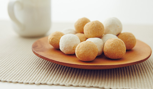 「ブールドネージュ」とは、アーモンド入りの生地をまるく焼きあげ、粉糖をまぶして仕あげた「白い雪の玉」という名前のフランス菓子です。これをアレンジした「キャラメルのブールドネージュ」は、質の良い牛乳を原料とした香り高いキャラメルを使い、生地とキャラメルの相性を考え風味が一番引き立つ生地と合わせて仕あげました。無印良品ではこのほかにも、お菓子の売り上げ上位の「ブールドネージュ」、フリーズドライのいちごと粉糖をあわせたパウダーをかけ、いちご風味豊かに仕あげた「いちごのブールドネージュ」をご用意しています。
