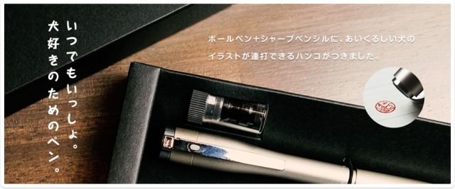「いぬずかん ネームペンタイプ」はボールペンとシャープペンシルの2WAYペンに犬のイラスト入りはんこ「いぬずかん」がついた、持ち運びにも便利な「犬好きのための筆記具」です。