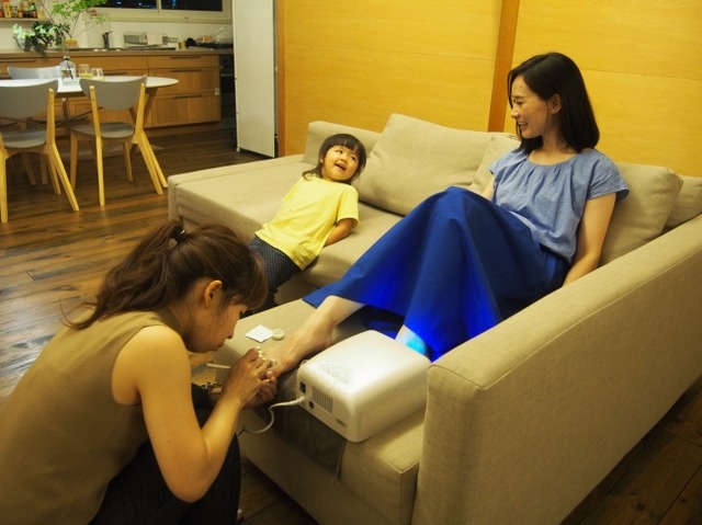 Omoteは、子育て中や仕事が忙しく、外出をして自分のメンテナンスをする時間を作り難い女性へ向けたサービスで、自宅にネイリスト、アイリスト(まつ毛エクステ)、ヘアスタイリストや、ヨガ、ピラティスのインストラクター、マッサージなどのセラピストが出張するマッチングサイトです。自宅で受けたいサービスとご希望の日時を指定すれば、スペシャリストが自宅にお伺いします。
