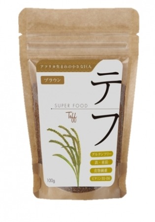 テフは、イネ科のエチオピア原産の穀物です。けしの実ほどの小さな粒にもかかわらずビタミンや鉄分、亜鉛、カルシウムなどのミネラルに富み、高たんぱく質を含んでいます。またグルテンフリー(グルテンを含有していない)なので、小麦アレルギー、セリアック病(グルテンアレルギー)、グルテン不耐症にも適した食品です。味にクセがなく料理の汎用性も高いことから、多くの海外セレブも愛用しており、非常に高い人気を得ています。 テフは、いま最も注目されているスーパーフードの1つです。