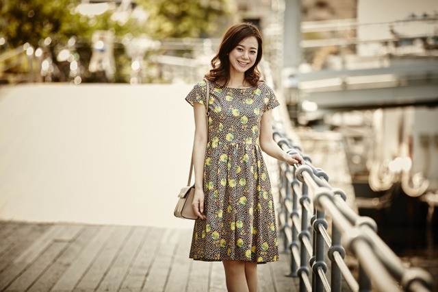 オリエンタルで鮮やかな花柄が、フレンチスリーブのフェミニンなデザインと好相性。