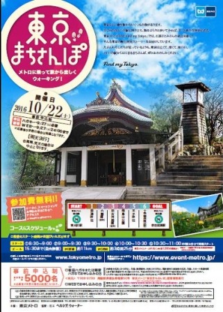 東京地下鉄株式会社(本社:東京都台東区 社長:奥 義光)では、ウォーキングイベント「東京まちさんぽ」を2016年10月22日(土)に開催いたします。