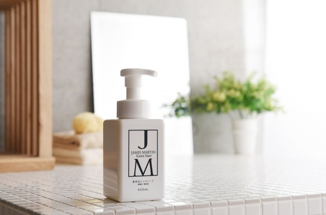 「ジェームズマーティン 薬用泡ハンドソープ」は、株式会社アルボースと共同で研究を重ね、すすぎ性・清浄殺菌力・保湿性においてハイスペックな製品に仕上がりました。従来のハンドソープと比べ、すすぎが早くすっきりとした使用感となっており、忙しい家事の合