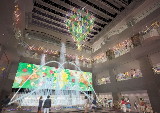 サンシャインシティ 噴水広場では『Colorful CHRISTMAS SHOW (カラフル クリスマス ショー)』と題し、4フロア吹抜けの空間を最大限利用し、「噴水」、光のオブジェ「イルミネーション」に加え、大型ビジョンを利用した「映像」、サラウンド音響システムによる立体的な「音楽」がコラボレーションした噴水演出コンテンツを実施いたします。(演出協力・施工:(株)丹青社)映像制作は、空間演出の独自技術をもつ(株)アシュラスコープインスタレーションが担当。映像には今年のクリスマスメインビジュアルをデザインする、人気のイラストレーター吉本彩子さんのイラストを使用し、サンシャインシティのクリスマスを彩ります。
