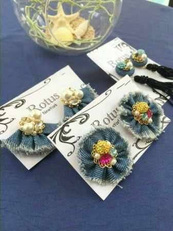 ピアスやブレスレットなど、コーディネートのワンポイントになる小物にデニムを取り入れています。1つ1つ丁寧に手作業で作成。