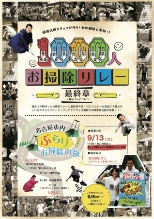 名古屋市で結婚式場を運営するサプライズカンパニー株式会社フ゛ライト゛・トゥー・ヒ゛ー(所在地:愛知県名古屋市瑞穂区 代表取締役:伊藤誠英 http://www.bridetobe.co.jp)では、毎年9月に社会貢献活動の一環として街頭清掃活動を行っております。2016年の今年は、過去2年行ってきた「1000人街頭掃除リレー」の最終章として、1000人リレーが完結する見込みです。今回は名古屋駅を飛び出して、街中を歩き回り本店のある瑞穂区までお掃除しながら縦断することになりました。道行く人を巻き込んで1000人リレー完結なるか!?