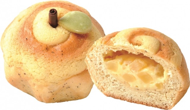 紅茶を練り込んだ生地にりんご入りのカスタードクリームを包み、りんごの形に焼き上げました。