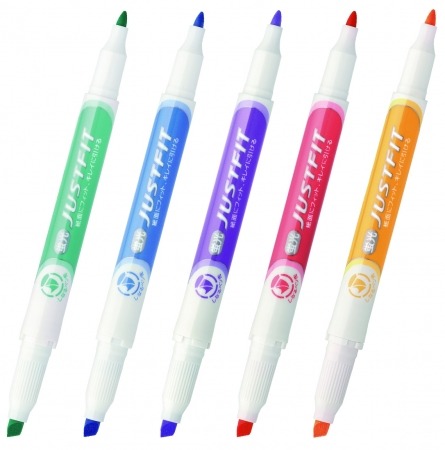 『ジャストフィット』は2014年8月に発売した、しなるペン先を搭載した蛍光ペンです。発売当初は5色を発売し、蛍光ペンのハードユーザーである学生の方に使いやすいとご好評をいただいています。