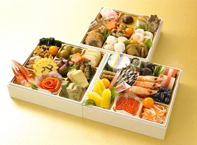 数の子や栗きんとんなど定番品に加えて、国産牛ローストビーフや「つくば鶏」八幡巻、広島産オイスターオリーブ漬などの肉料理や洋風料理、軽くてなめらかな口当たりが好評な国産豆乳レアチーズケーキや九州産金柑シロップ漬、創業160年老舗和菓子屋による、北海道産大手亡豆の生菓子などのデザートや甘味が充実しています。