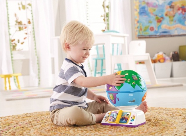 「スマートステージ・バイリンガル・グローブ」は、子供の成長に合わせて最適な遊び方をお選びいただける、「スマートステージ」シリーズから新たに発売される、生後18カ月のお子様からお使いいただける地球儀のおもちゃです。