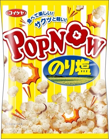 1962年発売以降、「ポテトチップス のり塩」は50年以上の歴史を重ねるロングセラーブランドとして多くの方にご支持いただいておりますが、この度、湖池屋の伝統の味である「のり塩」をポップコーンにした新商品「ポップナウ のり塩」を発売します。