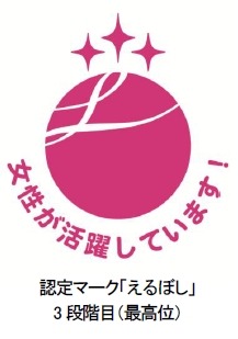 本認定は、女性活躍推進法に基づく行動計画の策定・届出を行った企業のうち、女性の活躍推進に関する取り組みの実施状況が優良な企業に与えられるものです。5つの評価項目に対し、それぞれ認定基準があり、基準を満たす項目数に応じて1段階目から3段階目まで3つのランクが設けられています。この度、トランスコスモスは最高位となる3段階目に認定されました。