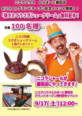 9月17日(土)グランドオープンイベント、焼き立てうさぎシュークリーム無料配布を実施します。