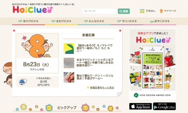 今回、保育士ユーザーが全国現役保育士数6割を越えた、保育や子育てに繋がる“遊び”情報サイト「ほいくる」のWebページとも連動しており、ほいくるアプリ1つあれば、たくさんの遊びや保育情報を収集したり管理することができます。