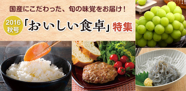 『おいしい食卓・2016秋号』では、おいしさはもちろんのこと、実りの秋にふさわしい全国各地の選りすぐりの旬の味覚を取り揃えました。