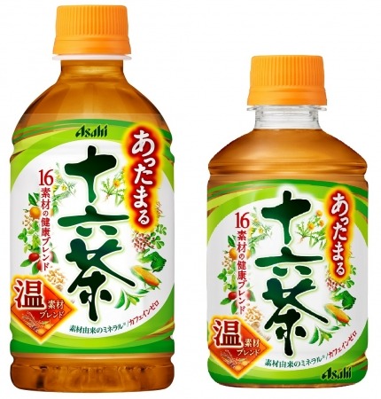 この度発売する「アサヒあったまる十六茶」は、東洋健康思想に基づき、ホット専用の健康十六素材を厳選したカフェインゼロの健康ブレンド茶です。霊芝(れいし)、ミカンの皮という温素材を新たにブレンドし、ホット飲用に適した甘香ばしい味わいに仕上げました。