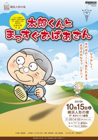 横浜人形の家は、10月15日(土)あかいくつ劇場にて、糸あやつり人形劇団みのむしの「太郎くんとまっすぐおばあさん」を上演します。