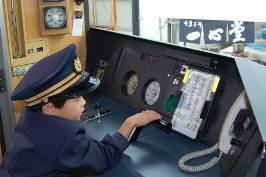 電車の乗務員室に乗り込み、運転士・車掌になった気分を味わえます。