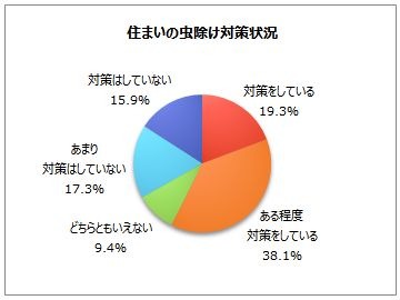 ■住まいの虫除け対策をしている人は6割弱。「虫に直接スプレーするタイプの殺虫剤」利用者が5割強、「誘引殺虫剤、毒餌剤」「蚊取り線香」「液体蚊取り器」が2割前後