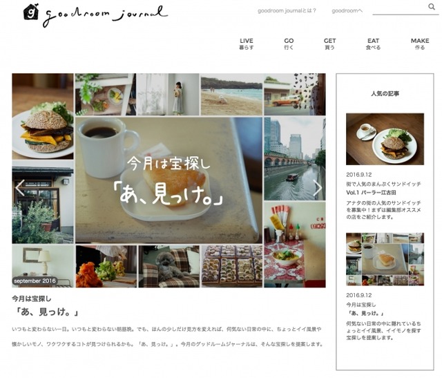 『goodroom』は、ひとつひとつのお部屋をスタッフが取材し、良い面、悪い面を率直に伝え、ライフスタイルにこだわりのあるユーザーにとって、より良く、自分らしい部屋が見つかるお部屋探しサイトです。今回のリニューアルにより『goodroom journal』では、部屋探しに役立つ情報だけでなく衣・食・住すべての分野の記事を大幅拡充し、日常をより良く、かけがえのない1日にするためのトータルな情報をお届けしてまいります。