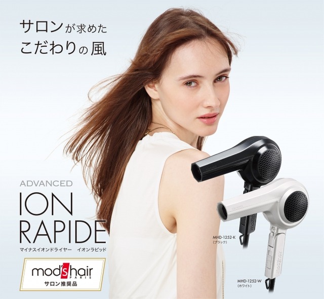 モッズ・ヘアは2016年9月20日より、従来の大風量ドライヤーの概念を覆す、「風量」ではなく「風速」で髪の速乾を実現するマイナスイオンドライヤー「ADVANCED ION RAPIDE /アドバンス イオンラピッド(ブラック・ホワイト)」を発売致します。