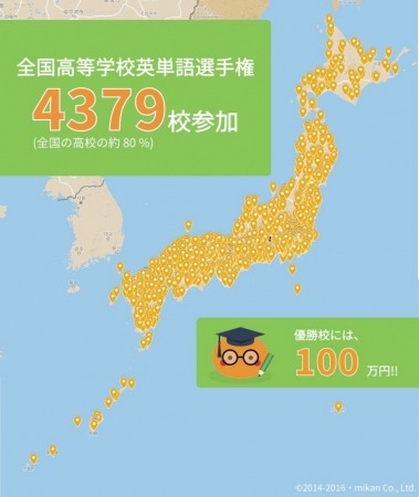 5月中旬~7月上旬に開催された「第一回 全国高等学校英単語選手権」(旧称:全国高校mikanバトル)では、三重県の暁高校が全国優勝し、その賞金100万円を勝ち獲りました。