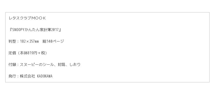 (C)2016 Peanuts Worldwide LLC www.SNOOPY.co.jp