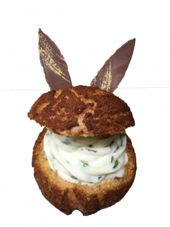 北海道産のクリームチーズカスタードの上品な味とフレッシュのエストラゴンの豊かな香りが一層クリームチーズの味を引き立ててくれるシュークリーム。