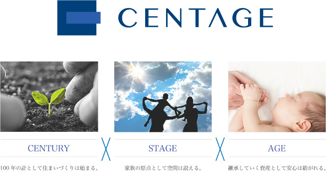 住まいは、人々が営みの中で、さまざまな文化や伝統を継承し、育んでいく空間です。人が年を経ていくとともに、住まいや街も共に歩んでいける、そこに暮らす人々の夢や想いをこめて、「CENTAGE(センテージ)」をシリーズ化し、育てていきたいと新興商事は考えております。