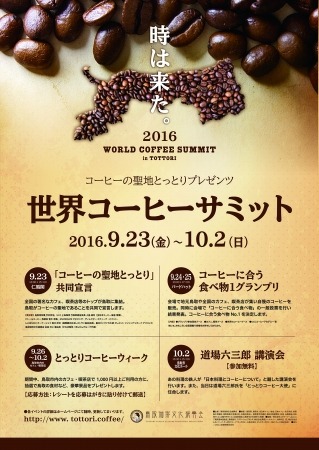 鳥取県では、鳥取のコーヒー文化やカフェ・喫茶店文化を広めることを目的に設立された「鳥取珈琲文化振興会」主催のもと、9月23日(金)から10月2日(日)までの10日間、『世界コーヒーサミット』を開催します。