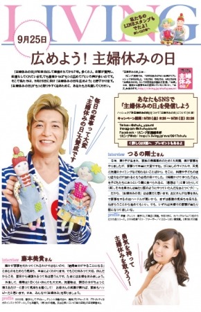 サンケイリビング新聞社(所在地: 東京都千代田区、代表取締役社長 和田 直樹)ほかリビングネットワーク各社が発行する、主婦を対象としたフリーペーパー・リビング新聞では読者の声から生まれた「主婦休みの日」(1月25日、5月25日、9月25日)の普及活動を行っています。