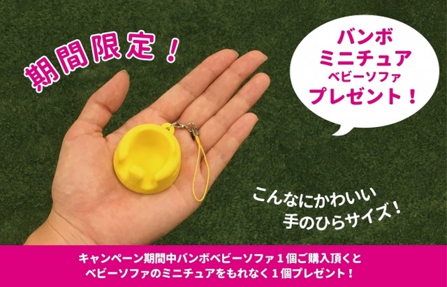 【内容】 キャンペーン期間中、バンボベビーソファをご購入の方にもれなく「ミニチュア ベビーソファ」ノベルティをプレゼント致します。