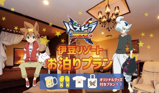 「伊豆のバリ」とよばれる伊豆のリゾートホテル「アンダ別邸伊豆一碧湖」に、家族で楽しめる『パズドラクロス』の宿泊プランが登場!宿泊プランをご予約いただくと、宿泊特典としてTVアニメ『パズドラクロス』のアニメDVD、ニンテンドー3DS本体と『パズドラクロス 神の章/龍の章』、『パズドラクロス』連動ホビーの「D-ギア」を無料にてレンタルいたします。お部屋でアニメ鑑賞、ゲーム体験、玩具の体験がお楽しみいただけるプランとなっています。さらに宿泊プランをご予約のお客様にはここでしか手に入らないオリジナルグッズ4点とオリジナル缶バッチ(14種)をセットでプレゼントしたします。