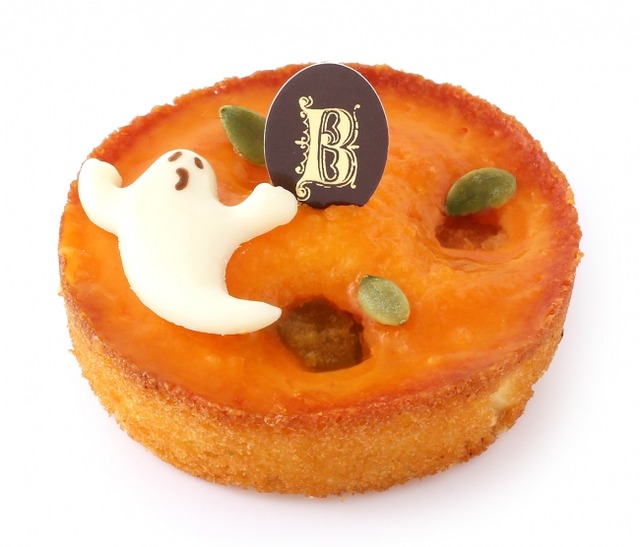 発酵バターの風味豊かなしっとりナンテ生地にかぼちゃペーストをたっぷりと焼き込んだ、濃厚なかぼちゃの甘みが広がる贅沢な味わいです。パンプキンシードとホワイトチョコレートのおばけを飾ったデザインで、ハロウィンパーティーにもぴったりです。