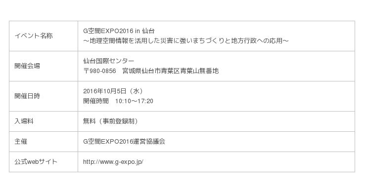 <G空間EXPO2016 in 仙台 開催プログラム>