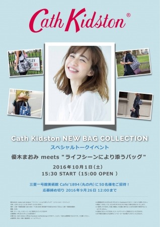 キャス キッドソン ジャパンは、グローバルキャンペーン NEW BAG COLLECTION “ライフシーンにより添うバッグ”のスタートを記念して、女性として、ママとして、様々な世代からそのライフスタイルに共感を得ている人気タレント 優木まおみさんをお招きした1日限りのトークイベント「 Cath Kidston 優木まおみ meets “ライフシーンにより添うバッグ“」を10月1日に丸の内三菱一号館美術館にて開催いたします。